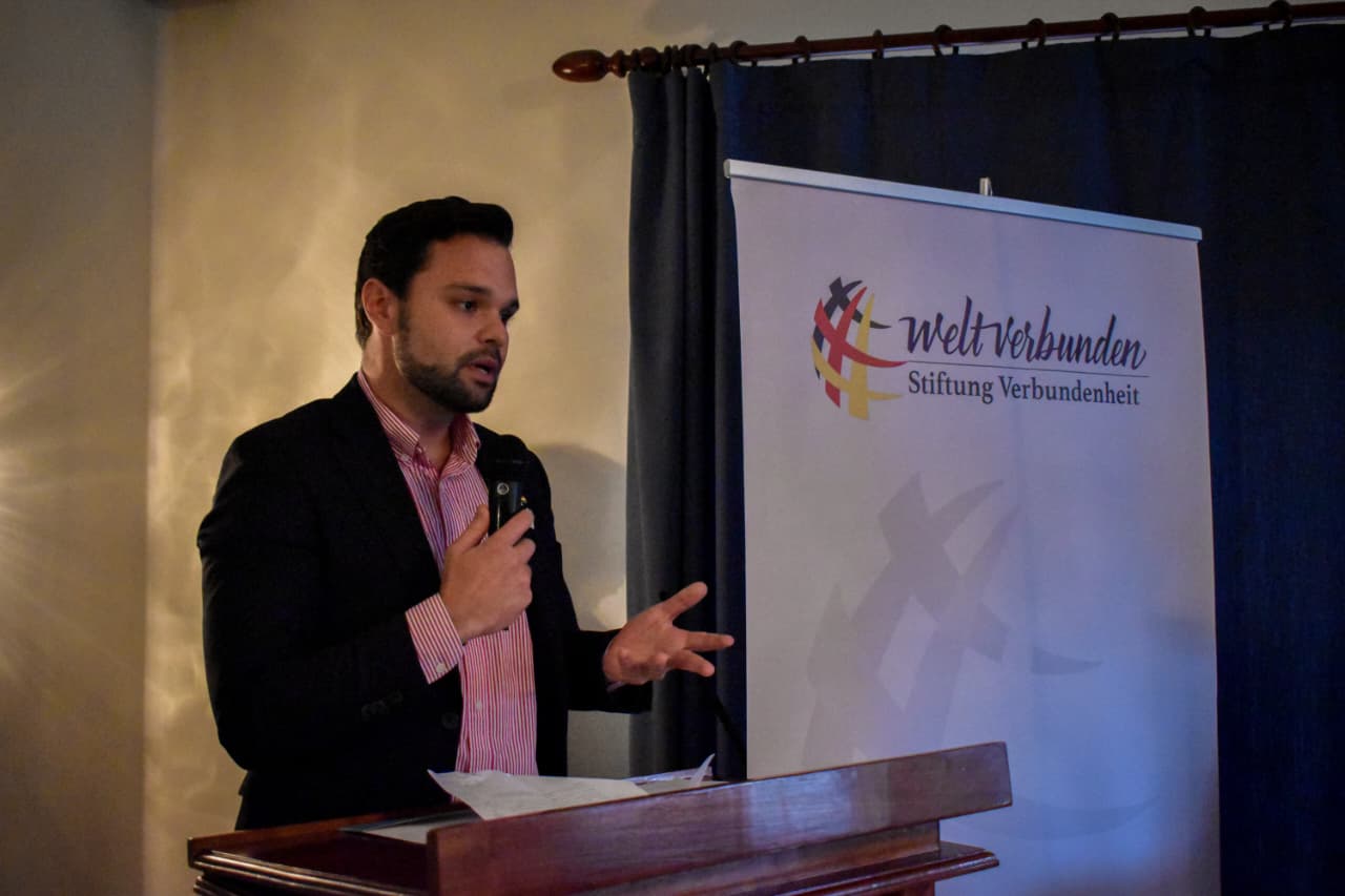 El Embajador de la República Federal de Alemania en Bolivia, Dr. José Schulz, ofreció las palabras de bienvenida, subrayando los logros alcanzados por #JungesNetzwerk y el respaldo renovado a sus proyectos de diplomacia ciudadana. A continuación, el Dr. Marco Just Quiles, Gerente General de la Stiftung Verbundenheit, destacó la proyección de la red y los desafíos por venir para su consolidación en el país. Luego, Ulises Morel, responsable de proyectos de la Fundación Verbundenheit, presentó un racconto de iniciativas desarrolladas en Bolivia y su impacto positivo en la sociedad.