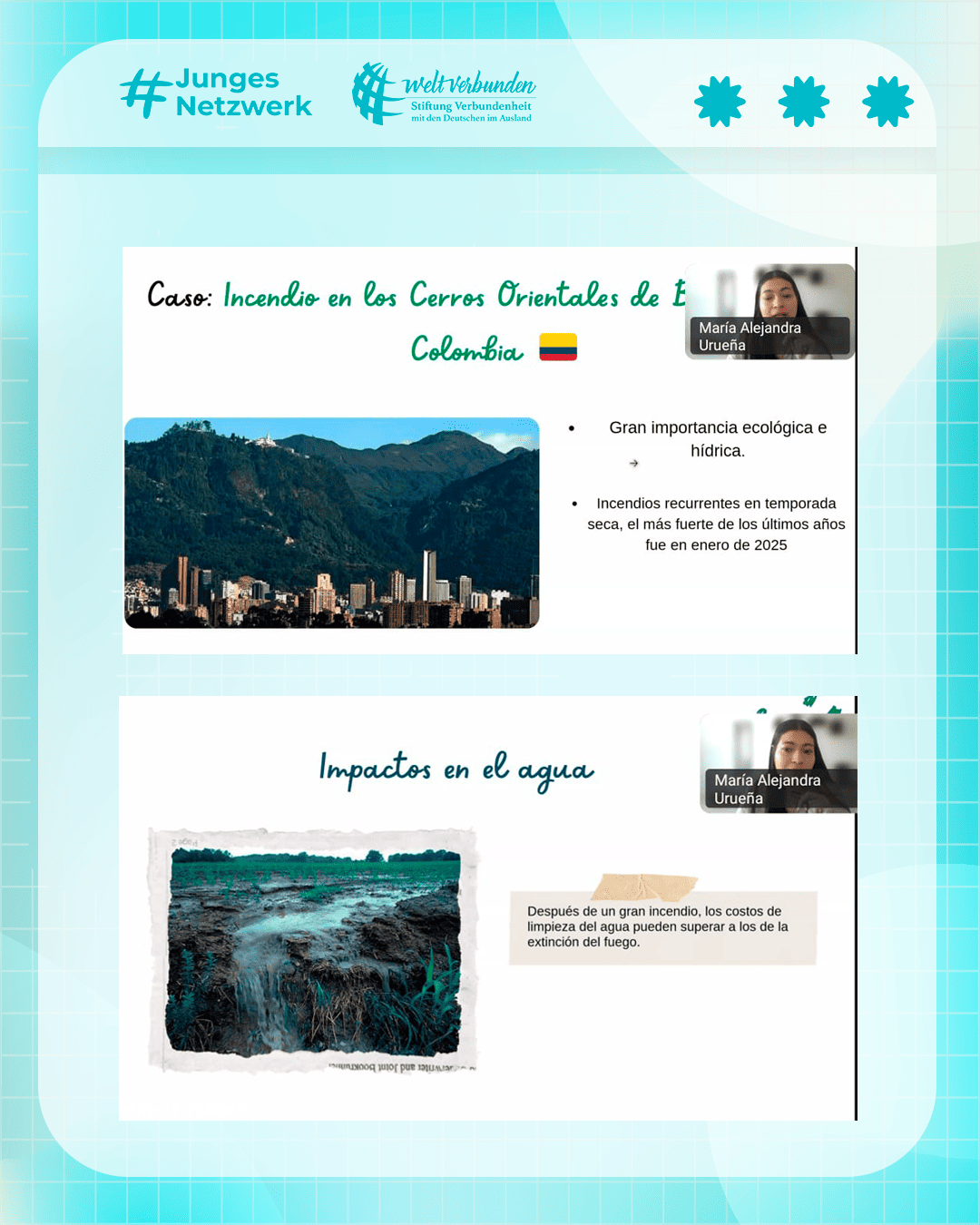 Miembros de la red #JungesNetzwerk organizaron un encuentro internacional sobre incendios forestales, en el marco de la serie temática sobre ambiente y sustentabilidad impulsada por el proyecto Ambiente zu Hause.