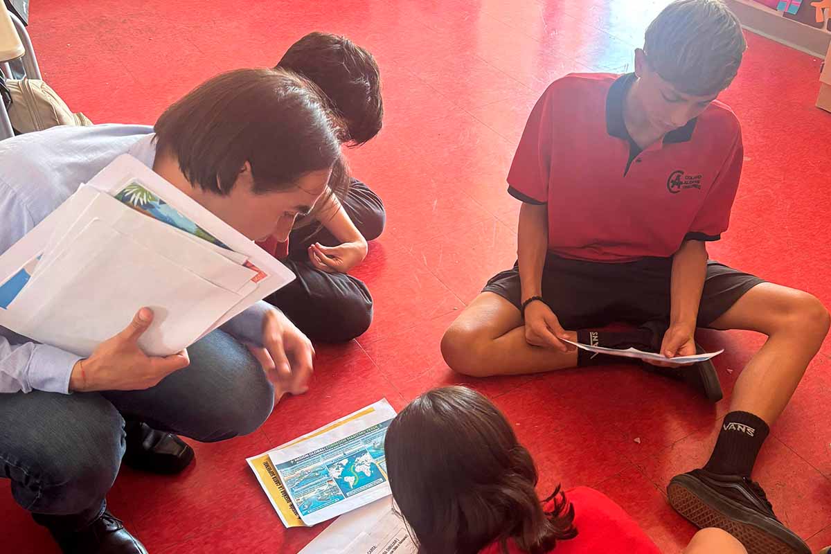 La actividad estuvo destinada a estudiantes de 8.º básico, de entre 12 y 14 años. Maestros de la Energía propuso una experiencia de aprendizaje inmersivo orientada a transformar conceptos abstractos de la transición energética en aprendizajes concretos. En ese marco, los alumnos asumieron el rol de diseñadores estratégicos y co-crearon las reglas de un juego de cartas que simula desafíos reales asociados a la descarbonización y a la cooperación internacional.