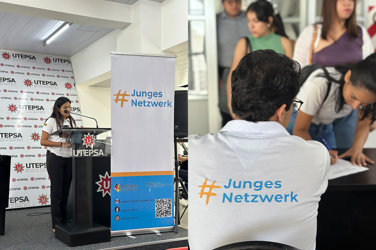 EventosEl jueves 27 de noviembre se realizó en la Universidad Tecnológica Privada de Santa Cruz (UTEPSA) el foro “Diplomacia sin corbata”, organizado por miembros de #JungesNetzwerk en colaboración con esta casa de estudios. La actividad se propuso acercar la reflexión sobre la diplomacia ciudadana al ámbito universitario, generando un espacio de diálogo sobre la responsabilidad social de la juventud, la participación política y los desafíos actuales de las democracias en la región.