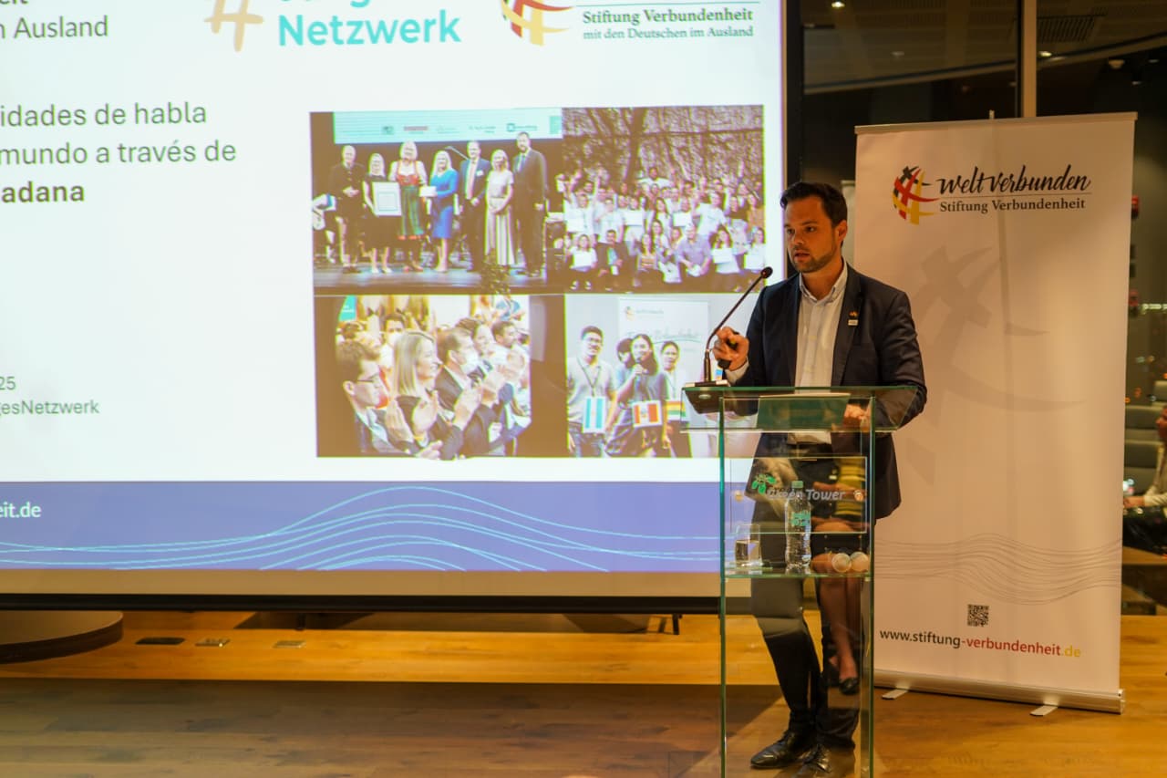 La ceremonia, moderada por Silvia Saenger, Responsable del Área Miembros de #JungesNetzwerk y la Stiftung Verbundenheit, inició con la bienvenida de Gabriel Podevils, Responsable de Equipo de la Stiftung Verbundenheit para América Latina.