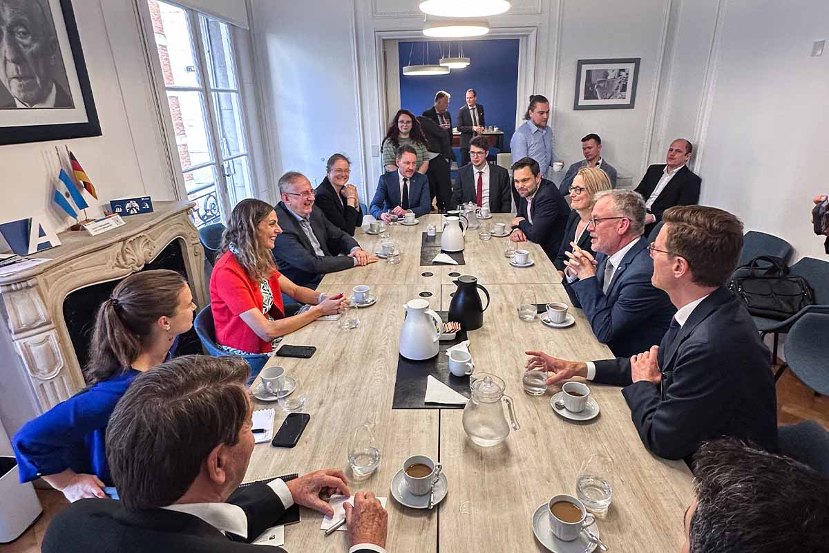 También formaron parte del encuentro Leticia Marquizo, docente de la Escuela Alemana de Montevideo, por Uruguay; Stefanie Mischner, integrante de la comisión directiva de la German Language School Conference, y Renate von Ludanyi, profesora de la Western Connecticut State University, presidenta de la German Language School Conference e integrante del consejo curatorial de la Stiftung Verbundenheit, por Estados Unidos.
